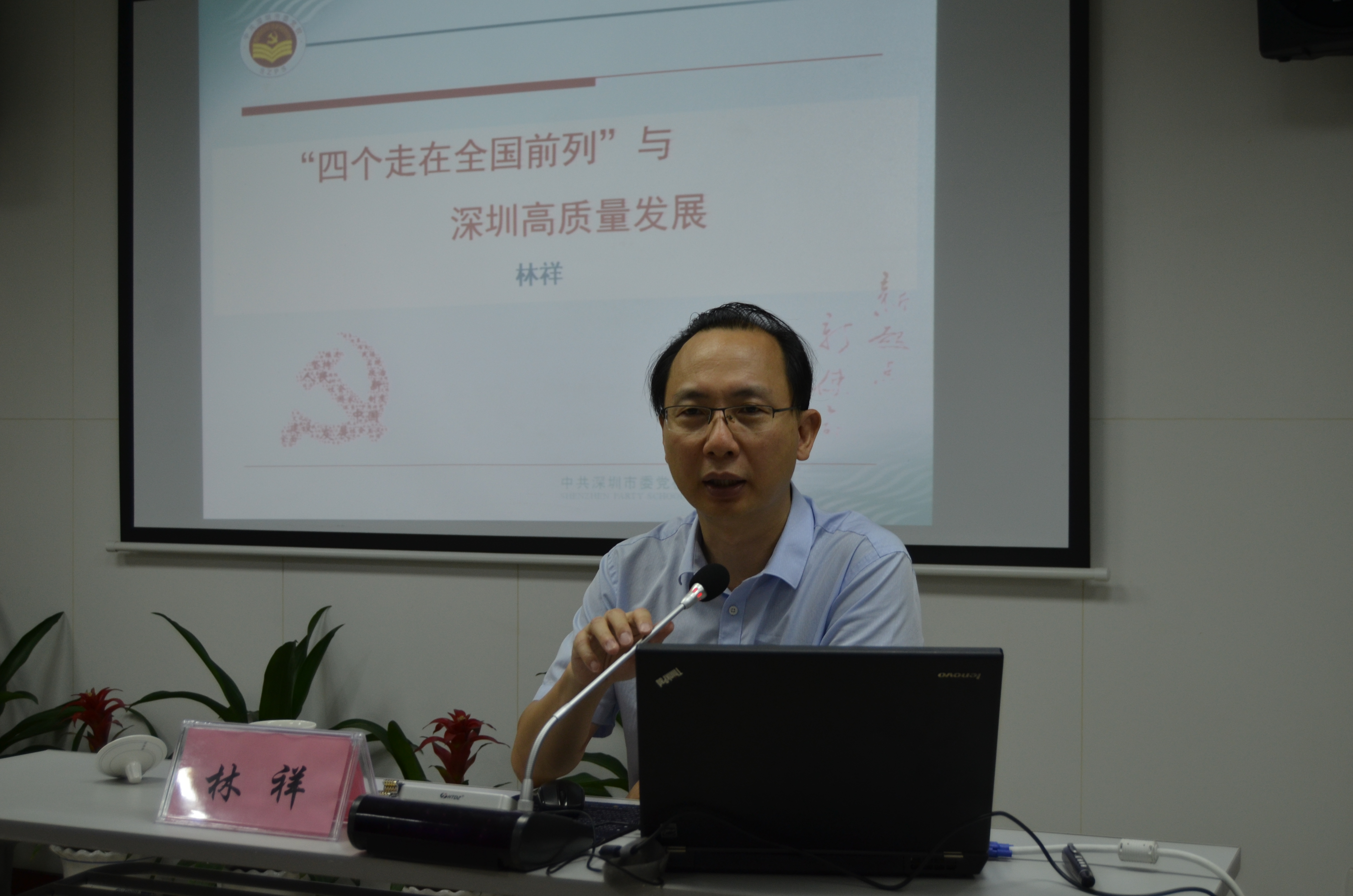 林祥同志以習近平總書記對廣東的重要講話精神入題,詳細闡述了廣東“四個走在前列”的深刻內涵。隨后為大家深入分析了中美貿易摩擦的原因、本質和意義,進而分析了深圳、全國乃至世界的經濟形勢,并向大家指出了深圳經濟發展的優勢和不足,最后向大家分析了今后深圳經濟高質量發展的方向。講座內容豐富,信息量大,得到大家的一致認可。蔡巧玉同志點評林祥同志的授課有理論、有事實,有數據、有個案,有比較、有分析,有研究、有思考、有見地,充分體現了一名黨員領導干部、一名黨建工作專家的站位、視野和客觀全面的學術精神。林祥同志的思維嚴謹、語言精煉、張馳有度,厚積薄發也贏得在場所有同志的熱烈掌聲。