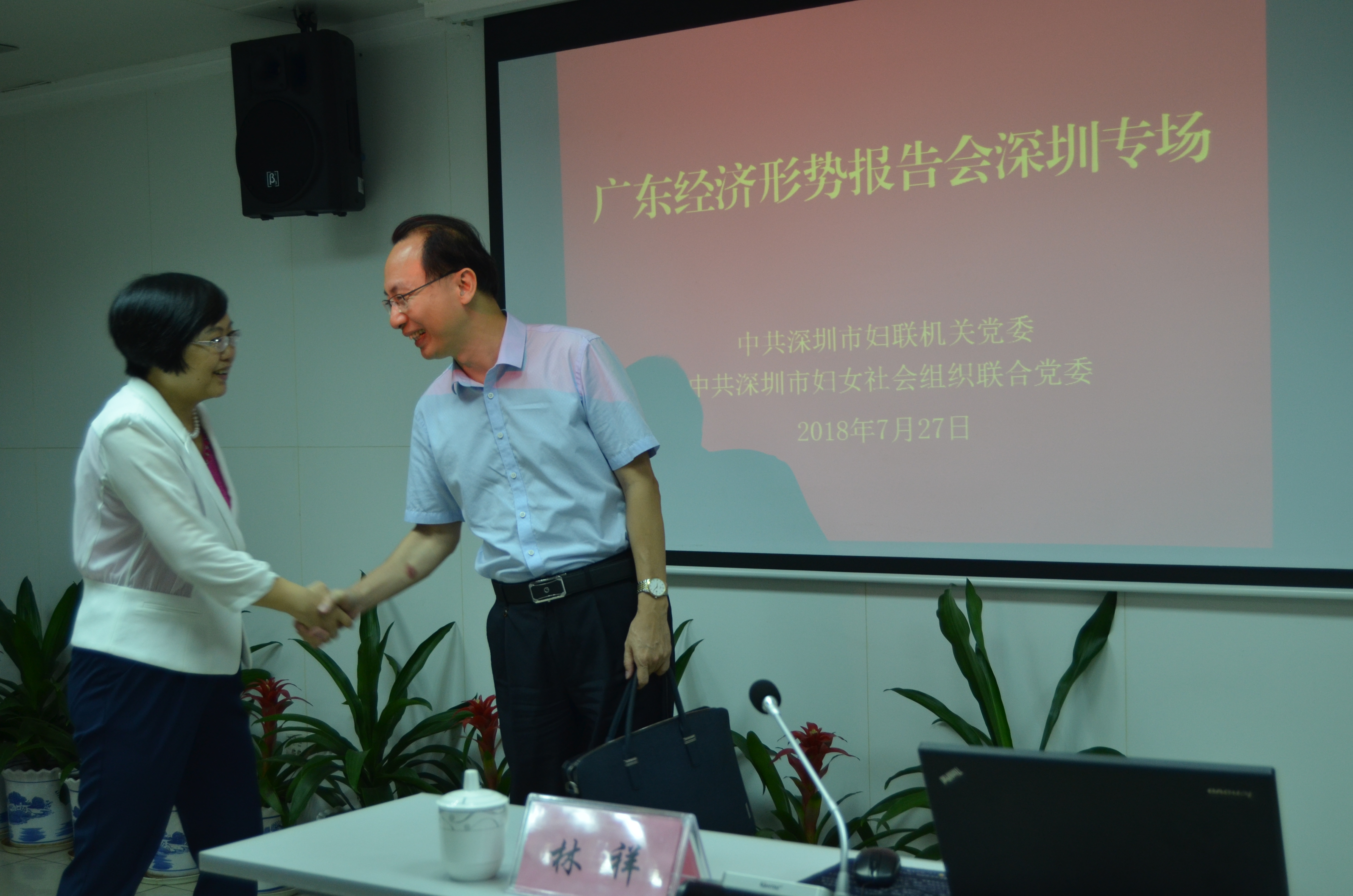 7月27日上午,市婦聯在婦兒大廈17樓會議室舉辦了廣東經濟形勢報告會深圳市婦聯專場,邀請深圳市委直屬機關工作委員會副書記林祥同志為大家作題為《“四個走在前列”與深圳高質量發展》的專題講座。市婦聯黨組書記、主席馬宏講座前與林祥同志會面,黨組成員、副主席、機關黨委書記蔡巧玉,市婦聯系統近100名黨員、干部職工參加了講座。